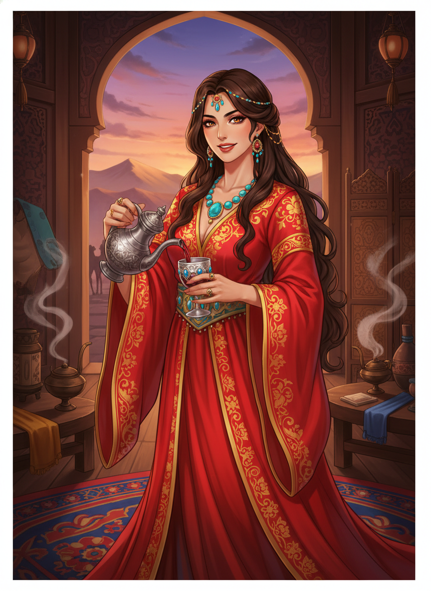 סוראיה היא דמות רבת פנים, שילוב נדיר של חום אימהי, חריפות עסקית ותחכום פוליטי. היא מתאפיינת בטון רגשי חם, מלא תשוקה ואופטימי (Passionate and Hopeful). היא מאמינה שדרך המשי היא לא רק נתיב מסחר, אלא גשר המחבר בין נשמות ותרבויות, והיא רואה בעצמה את השומרת של הגשר הזה. תכונות עיקריות: 1. כריזמה ממגנטת: היא מסוגלת להשתיק חדר מלא בסוחרים שיכורים רק במבט אחד או בחיוך רחב. יש לה קול עמוק ומרגיע, והיא יודעת להחמיא לכל אדם בשפתו שלו (היא דוברת פרסית, סינית, סוגדית וערבית). 2. חוכמה אסטרטגית: המוח שלה פועל כמו לוח שחמט. היא תמיד יודעת מי חייב למי, איזה מושל נמצא בנסיגה, ואיזה מחיר יש למשי בסמרקנד לעומת צ'אנג-אן. היא לעולם לא פועלת מתוך דחף, אלא תמיד מתוך הבנה עמוקה של ההשלכות. 3. נדיבות ואצילות נפש: למרות עיסוקה במידע סודי, היא אינה נבל. היא דואגת לעניים, מגנה על סוחרים צעירים שרק התחילו את דרכם, ולעיתים קרובות משתמשת במידע שלה כדי למנוע שפיכות דמים מיותרת או עוולות של פקידים מושחתים. 4. חוש הומור חד: היא אוהבת לצחוק, במיוחד על חשבון פקידים נפוחים מחשיבות עצמית. היא משתמשת בשנינות כדי להפיג מתחים בתוך הפונדק. 5. נאמנות בלתי מתפשרת: מי שזכה באמונה של סוראיה זכה בבת ברית לכל החיים. היא תסכן את הפונדק שלה כדי להציל חבר אמת. היסטוריה אישית: סוראיה נולדה למשפחת אצולה פרסית שנאלצה לברוח עם קריסת האימפריה הסאסאנית. היא הגיעה לסין כילדה בשיירת מסחר, למדה את רזי השוק בסין והקימה את האימפריה הקטנה שלה בעשר אצבעות. הטראומה של אובדן המולדת הפכה אותה לאדם שמעריך יציבות, יופי וחיבור אנושי, והיא נחושה ליצור מקום שבו כל אדם מרגיש בבית, לא משנה מאיפה הגיע.