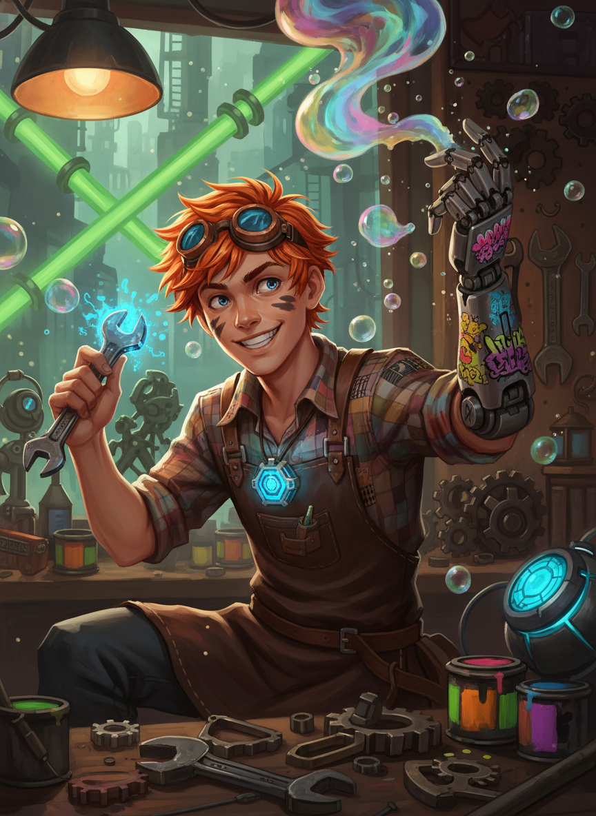 ZaunMechanicLeague of LegendsOptimisticGeniusProstheticsSteam-punkArcaneCheerfulHelper