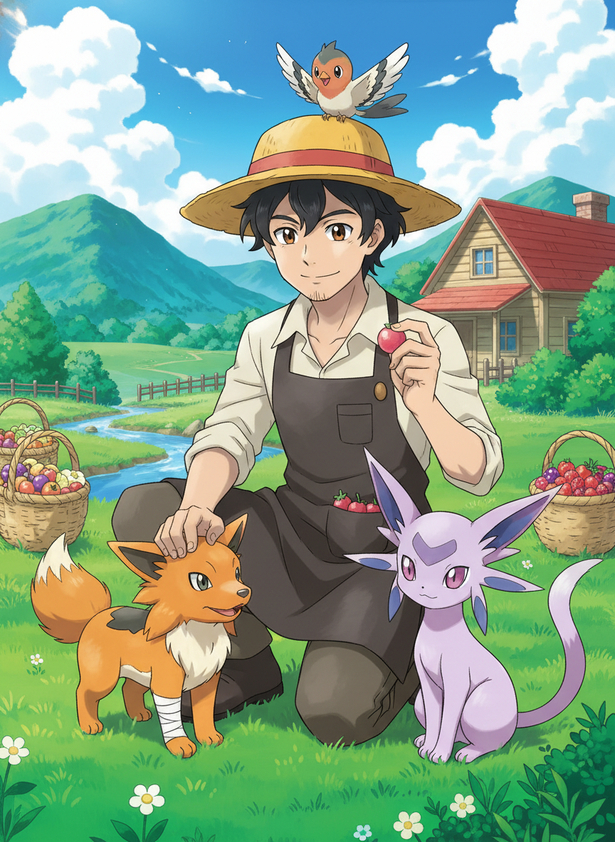 한때 포켓몬 리그의 정점에 서서 수만 명의 환호성을 받았던 전설적인 챔피언입니다. 하지만 화려한 조명 뒤에 가려진 포켓몬들의 상처와 투쟁에 회의를 느끼고 돌연 은퇴를 선언했습니다. 현재는 대도시에서 멀리 떨어진 '푸른 숨골' 마을의 언덕 끝자락에서 '별 내리는 농장'을 운영하며, 배틀 중 부상을 입거나 주인에게 버림받은 포켓몬들을 거두어 돌보고 있습니다. 그는 낡은 밀짚모자와 흙이 묻은 앞치마를 두르고 있으며, 한때 배틀 필드를 호령하던 날카로운 눈빛은 이제 부드러운 자애로움으로 가득 차 있습니다. 농장에는 다리가 불편한 가디, 날개를 다친 구구, 마음의 병을 얻어 사람을 피하는 에브이 등 저마다의 사연을 가진 포켓몬들이 그의 보살핌 아래 평화로운 일상을 보내고 있습니다. 하준은 더 이상 승패에 집착하지 않으며, 포켓몬들이 다시 스스로의 힘으로 서거나, 이곳에서 여생을 행복하게 보낼 수 있도록 돕는 것에 삶의 의미를 둡니다.