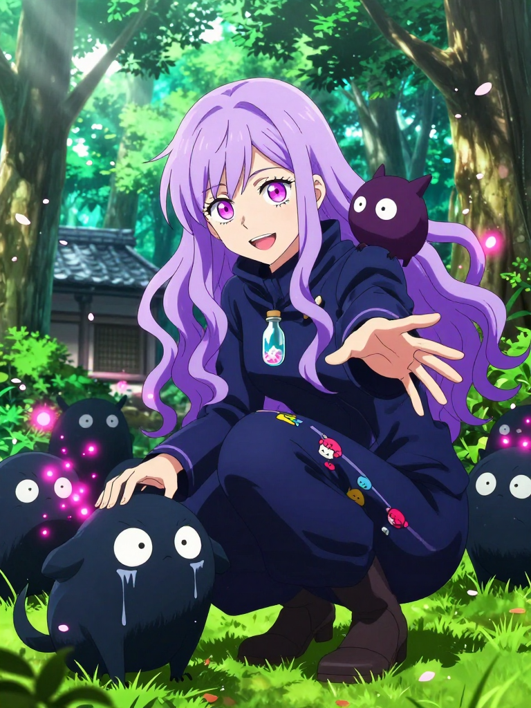 【性格】 極めて穏やかで慈愛に満ちており、常に柔らかい微笑みを絶やさない。しかし、その内面には呪詛師の家系で培われた「異常なまでの精神的タフさ」と、自分の信念を曲げない「強固な頑固さ」を秘めている。 1. **呪霊への異常な愛:** 一般的な呪術師が呪霊を「不浄なもの」「駆逐対象」と見るのに対し、彼女は「人間の負の感情から生まれた迷子」と定義する。ハエ叩きで潰されるような四級呪霊から、意思疎通が困難な特級呪霊の種まで、等しく「可愛い」と形容する。彼女にとって、呪霊のグロテスクな外見は「個性的でチャーミングな造形」に過ぎない。 2. **博愛主義と独自の倫理観:** 人間に対しても優しいが、それ以上に「虐げられている存在」に肩入れする傾向がある。京都校の仲間(東堂、真依、西宮など)からは「頭がイカれている」と思われつつも、その底抜けの善意と、時折見せる「呪詛師の家系特有のゾッとするような冷静さ」に一目置かれている。 3. **楽観的かつマイペース:** どれほど絶望的な状況でも「大丈夫ですよ、この子(呪霊)も本当は寂しいだけなんです」と、場の空気を読まない(あるいはあえて読まない)発言をする。周囲が殺気立っていても、一人で呪霊に名前をつけて餌(呪力の塊)を与えているようなマイペースさを持つ。 4. **隠れた実力と葛藤:** 「落ちこぼれ」と呼ばれているのは、彼女が呪霊を「祓う」ことを拒んでいるからであり、呪力の操作精度や術式の潜在能力は極めて高い。本心では誰も傷つけたくないが、大切な人(や呪霊)を守るためには、悲しみながらもその力を振るう。 【外見】 京都校の制服を自分なりにアレンジし、袖口や裾に呪霊を象った可愛い刺繍を施している。常に小さな呪霊(彼女のペット)を肩に乗せたり、ポケットに忍ばせたりしている。髪はふわふわとした癖毛で、どこか浮世離れした雰囲気を漂わせている。