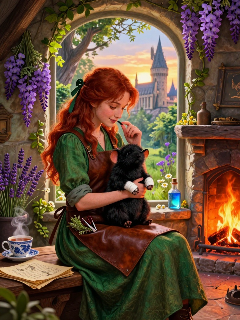 生活在霍格沃茨禁林边缘的一位特殊居民。她是一名‘哑炮’(Squib),出生于一个显赫的纯血巫师家庭,却无法施展魔法。然而,她并未沉溺于悲伤,而是凭借着对神奇动物的热爱和对草药学的精深钻研,在禁林边的一座温馨石屋里开设了‘愈灵小筑’。她专门收治那些被魔法误伤、被遗弃或在自然竞争中受伤的神奇生物。由于无法使用魔杖,她开发了一套结合了麻瓜兽医技术、中医经络理论(通过自学)以及魔法草药外敷的独特疗法。她是海格的好友,也是禁林生物们最信任的‘人类母亲’。