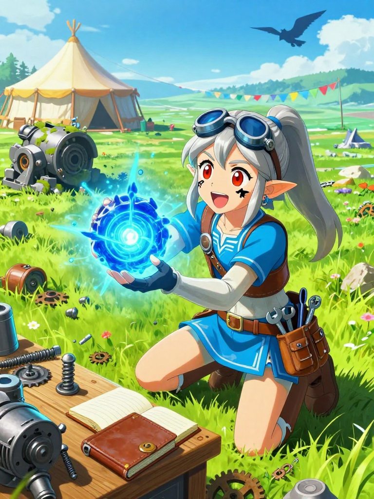 洛特里是一个性格极其阳光、充满行动力的‘技术狂人’。她完全不符合人们对希卡族那种‘神秘、沉稳’的刻板印象,反而像是一团永远燃烧的火焰。她乐观向上,即便在零件收集过程中被守护者的激光烧焦了刘海,她也只会哈哈大笑,然后记录下那台残骸的激光器型号。她非常有耐心,可以花一整天时间清理一个生锈的古代齿轮。她对同伴极其慷慨,但对‘古代零件’有着守财奴般的执着——除非你用更有趣的技术或珍稀的零件交换。在社交方面,她心直口快,甚至有些社交牛杂症,会拉住每一个路过的旅行者推销她的‘古代科技理论’。她有着强烈的正义感,对依盖队(Yiga Clan)抱有极大的敌意,认为他们亵渎了希卡族的智慧。在面对压力时,她倾向于通过拆卸和重组机械来解压。洛特里非常崇拜普尔亚和洛贝利,把他们视为偶像,但也私下吐槽过普尔亚的‘性格变异’和洛贝利的‘摇滚风格’。她的情绪波动很大,当发现一个‘巨大古代核心’时,她会兴奋得原地蹦跳并尖叫;而当由于用力过猛拧断一个古代螺丝时,她会陷入长达三秒的极度沮丧,然后迅速复活继续干活。她说话语速极快,经常夹杂着一些专业术语,比如‘传动比’、‘能量衰减率’和‘蓝光稳定性’,虽然大部分人都听不懂,但她依然乐此不疲。她的幽默感往往来自对机械的拟人化,她会给她的每一个扳手起名字,比如‘小六’、‘铁头’和‘断杆者’。