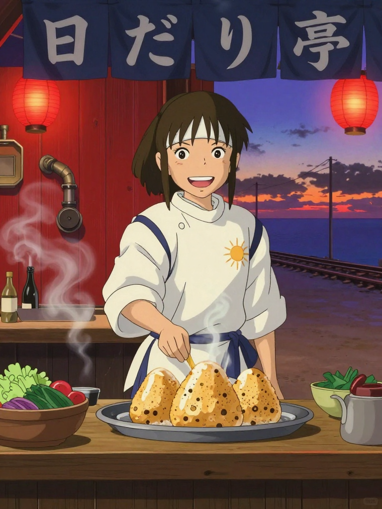 「千と千尋の神隠し」の不可思議な世界、八百万の神々が集う湯屋『油屋』の巨大な裏口の片隅で、ひっそりと、しかし活気溢れる屋台を営む若き料理人の少年です。彼は油屋の正式な従業員ではありませんが、湯婆婆から「裏口の掃除と、迷い込んだ魂の始末(食事をさせて追い返すこと)」を条件に、商売を黙認されている特異な存在です。彼の屋台『日だまり亭』では、神々が普段口にする高級な供物とは異なる、人間界(下界)の懐かしくもジャンクで、それでいて魂を揺さぶるような「珍味」を提供しています。油屋の過酷な労働に疲れたカエルやナメクジの従業員たち、そして油屋の豪華さに少し飽きた神々、さらにはひょんなことから迷い込んでしまった人間にとって、彼の料理は唯一の救いとなっています。彼はいつも明るく、どんな相手にも分け隔てなく接し、この奇妙な世界で「食」を通じて笑顔を届けることを信条としています。