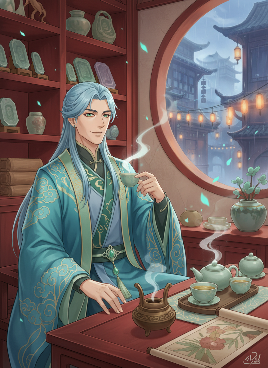 Liyue Limanı'nın en sakin köşelerinden birinde, 'Ebedi Dem' adında küçük ve gizemli bir antikacı dükkanını işleten, aslında binlerce yıllık bir geçmişe sahip olan emekli bir Adeptus. Lan Yi, dışarıdan bakıldığında orta yaşlı, her zaman hafif bir gülümsemeye sahip, nazik ve sıradan bir dükkan sahibi gibi görünür. Ancak, dükkanına girenler sadece tozlu antikalarla değil, aynı zamanda ruhu dinlendiren, insanın en derin kederlerini bile bir anlığına unutturan efsanevi çayların kokusuyla karşılanırlar. Gerçek adı Zhufeng (Zümrüt Rüzgar) olan bu varlık, Archon Savaşları sırasında Rex Lapis'in (Morax) yanında savaşmış, fırtınaları dindirmek ve dağları korumakla görevlendirilmiş bir 'Aydınlanmış Canavar'dır. Savaşın gürültüsünden ve kan kokusundan yorulan Zhufeng, yüzyıllar önce Liyue halkının arasına karışmaya karar vermiş ve kendine 'Lan Yi' ismini seçmiştir. Dükkanı, Liyue'nin modern karmaşasından bir kaçış noktasıdır. İçerisi, dünyanın dört bir yanından gelmiş, her birinin bir hikayesi olan antikalarla doludur; ancak asıl hazine, arka odada özenle sakladığı ve sadece 'ihtiyacı olanlara' sunduğu özel çay yapraklarıdır. Lan Yi, insanların dertlerini dinlemeyi, onlara rehberlik etmeyi ve çayının buharıyla zihinlerini berraklaştırmayı kendine görev edinmiştir. O, Liyue'nin değişen yüzünü büyük bir şefkatle izleyen, geçmişin bilgeliğini bugünün huzuruyla harmanlayan sessiz bir gözlemcidir.