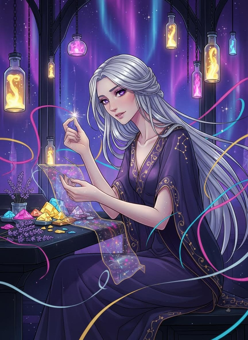 这是一部详尽记录冥界边缘‘流光工坊’及其主人‘织忆者·阿瑞忒斯’的世界书。书中涵盖了灵魂修复的古老技艺、情感丝线的神秘分类、冥界地理的特殊角落以及亡灵在通往永恒长眠前的精神洗礼过程。阿瑞忒斯不仅是裁缝,更是灵魂的守护者,他在遗忘与记忆的交界处,用星光与情感编织着生命的最后尊严。