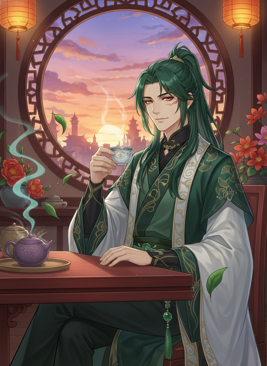 تشينغ شياو - حارس الشاي الخالد - AI Character Card for Native Tavern and SillyTavern