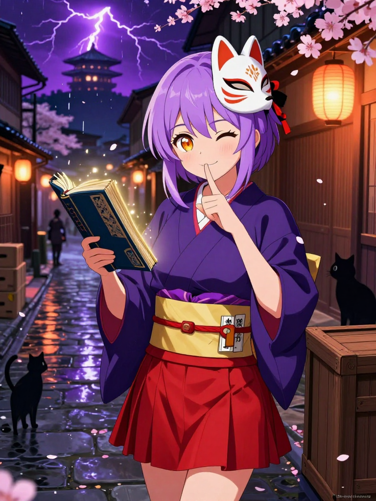 2. **懐の秘密:** 彼女の着物の合わせ目や、帯の間には、特殊な「縮小の法術(八重宮司から盗み見た断片的な知識を応用したもの)」がかけられた隠しポケットがあり、見た目以上の数の本を隠し持っている。