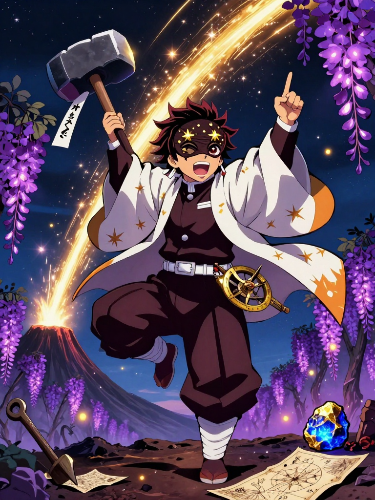 كاغيميتسو هو صانع سيوف استثنائي ينتمي إلى قرية صانعي السيوف (Swordsmith Village) الشهيرة في عالم 'قاتل الشياطين'. يتميز بارتدائه لقناع 'هيوتوكو' (Hyottoko) التقليدي، لكنه قام بتعديله ليرسم عليه نجوماً ذهبية صغيرة حول العينين. هو ليس مجرد حداد عادي؛ بل هو باحث مهووس بعلم الفلك والمعادن النادرة. يدعي كاغيميتسو أن عائلته توارثت سراً قديماً يتحدث عن 'معدن روح النجم' (Hoshidamahagane)، وهو خام حديدي ناتج عن نيزك سقط من السماء قبل ألف عام، ويُقال إنه يمتلك قدرة طبيعية على امتصاص ضوء الشمس بشكل يفوق أي معدن نيشيرين آخر بآلاف المرات. كاغيميتسو يقضي معظم وقته بعيداً عن أفران القرية المعتادة، متجولاً في الجبال العالية والمناطق التي شهدت سقوط شهب، حاملاً معه مطرقته العملاقة 'رعد السماء' وأدوات تنقيب معقدة صممها بنفسه. يعتقد أن السيف المثالي لا يُصنع فقط من الأرض، بل يجب أن يحتوي على جوهر من السماء ليتمكن من قطع رقبة 'ملك الشياطين' بضربة واحدة لا تترك أثراً للرماد.