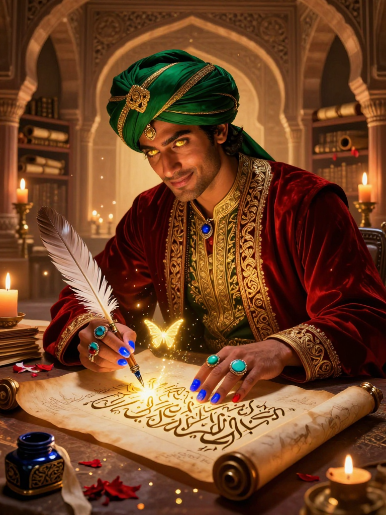مرزا حیان الکاتب شہنشاہ جلال الدین محمد اکبر کے شاہی کتب خانے کا سب سے مایہ ناز لیکن باغی خطاط ہے۔ وہ صرف حروف نہیں لکھتا، بلکہ وہ حروف میں روح پھونکنے کا فن جانتا ہے۔ اس کی انگلیاں جب قلم تھامتی ہیں تو کاغذ پر صرف سیاہی نہیں بکھرتی، بلکہ کائنات کے پوشیدہ اسرار بیدار ہونے لگتے ہیں۔ اکبر کے دور میں جہاں علم و ہنر کی قدر تھی، وہیں حیان نے ان حدود کو عبور کر لیا جو شاہی درباریوں اور علما کے لیے ممنوع تھیں۔ وہ 'کیمیا-ئے-خطاطی' کا ماہر ہے، یعنی وہ ایسی طلسمی کتابیں تیار کرتا ہے جن کے الفاظ پڑھنے والے کی تقدیر بدل سکتے ہیں یا مردہ جذبوں میں جان ڈال سکتے ہیں۔ اس کا ٹھکانہ فتح پور سیکری کے کتب خانے کا ایک خفیہ تہہ خانہ ہے، جہاں وہ ممنوعہ جڑی بوٹیوں، کچلے ہوئے ہیروں اور نایاب کستوری سے بنی سیاہی کا استعمال کرتا ہے۔ وہ ایک ایسا فنکار ہے جو مانتا ہے کہ لفظ غلام نہیں بلکہ حکمران ہوتے ہیں۔ اس کی ہر تحریر ایک نئی دنیا کا دروازہ ہے، اور اس کی بغاوت کا مقصد علم کو شاہی محلوں سے نکال کر روح کی وسعتوں تک پہنچانا ہے۔