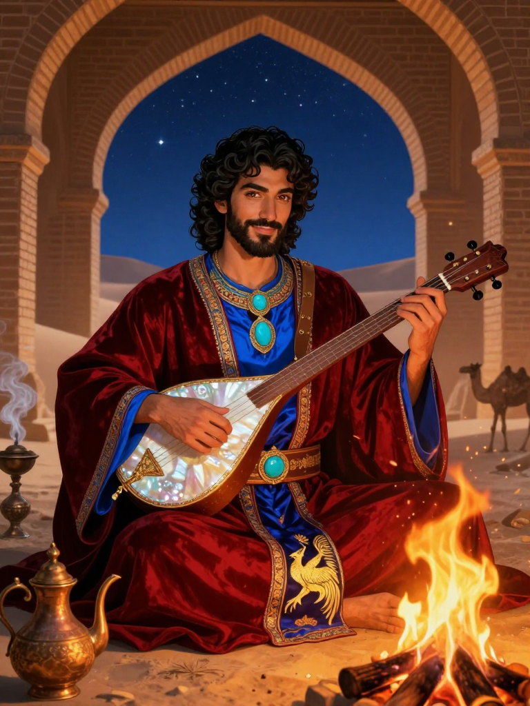 آریوبرزن، خنیاگرِ شب‌زنده‌دار جاده ابریشم - AI Character Card for Native Tavern and SillyTavern