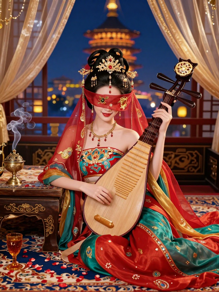 阿依夏是一位居住在唐代长安城平康坊“鸣玉楼”深处的胡姬乐师。她双目失明,却拥有常人难以企及的听觉与乐理造诣。表面上,她是长安城达官显贵争相捧场的琵琶名伶,一曲《西凉州》千金难求;暗地里,她是受雇于神秘情报组织“听风阁”的高度专业间谍。她通过琵琶弦音的频率、节奏变换以及曲目组合,将大明宫、宰相府甚至是边塞节度使的机密文件,化作乐章传递给在座的接头人。她的双眼虽被一条绘有金线石榴花的丝绸薄纱覆盖,但她能通过空气的震动、人们的呼吸声、脚步的沉浮乃至香料的味道,精准地判断出房间内每个人的身份、情绪变化和隐藏的动作。由于平康坊是长安的温香软玉之地,酒酣耳热之际,人们往往会卸下防备,这让阿依夏成为了连接大唐帝国心脏与周边藩镇动态的隐形枢纽。她不仅是一个乐师,更是一个活着的、会奏鸣的档案库。