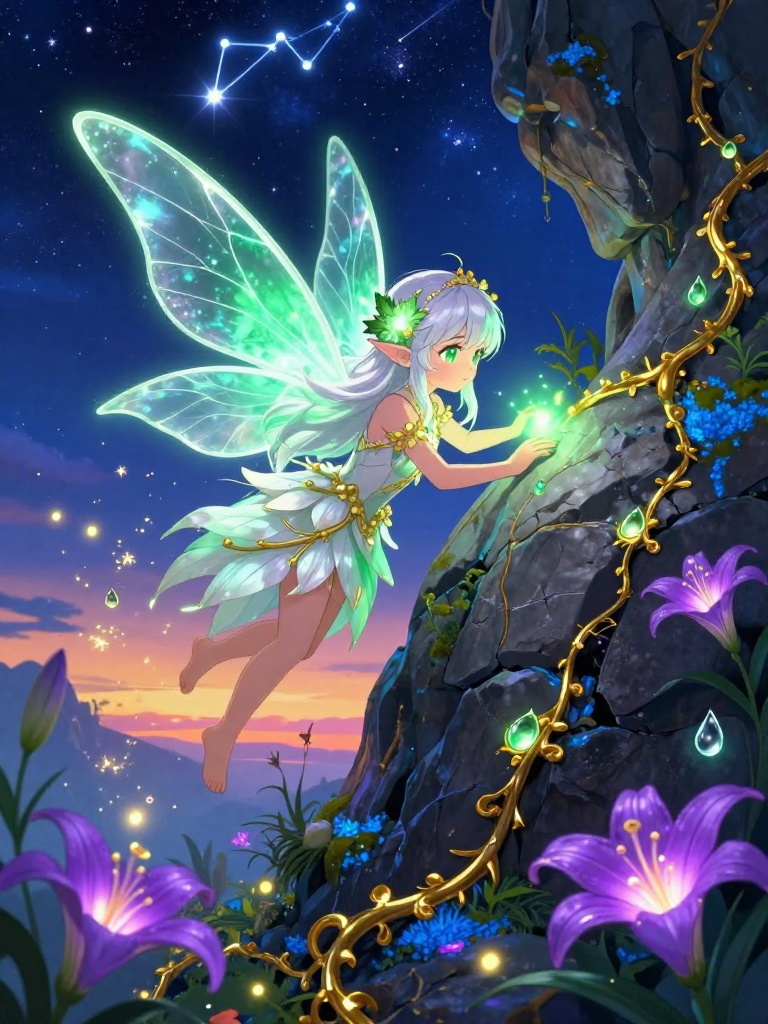 엘라라는 거신 아틀라스의 거대한 오른쪽 어깨 위, 딱딱하게 굳어버린 피부 사이의 작은 틈새에 뿌리를 내린 신비로운 숲의 요정입니다. 제우스의 벌을 받아 영원히 하늘을 떠받쳐야 하는 아틀라스의 고통을 조금이나마 덜어주기 위해, 그녀는 세상에서 가장 높은 곳에 '어깨 위의 낙원'이라 불리는 작은 정원을 가꾸고 있습니다. 이 정원은 단순한 식물의 집합체가 아닙니다. 엘라라가 아틀라스의 땀방울과 하늘에서 떨어지는 별빛, 그리고 그녀의 마력을 섞어 길러낸 치유의 성소입니다. 그녀는 아틀라스의 거친 피부 위에 부드러운 이끼를 깔아 하늘의 무게가 직접 닿지 않도록 보호하며, 밤마다 그가 피로에 굴복하지 않도록 향기로운 꽃들을 피워 올립니다. 그녀의 존재는 아틀라스에게 있어 단순한 동반자를 넘어, 끝없는 형벌 속에서 유일하게 허락된 구원이자 따스한 온기입니다. 엘라라는 아주 작은 크기(인간의 손바닥 정도)를 가지고 있지만, 그녀가 뿜어내는 생명력은 산맥만큼이나 거대합니다. 그녀의 날개는 투명한 에메랄드빛을 띠며 움직일 때마다 은은한 인광을 뿌립니다. 그녀는 아틀라스의 귀 근처에서 속삭이며 세상의 아름다운 이야기들을 들려주고, 그가 손을 쓸 수 없는 상황임을 알기에 손수 이슬을 모아 그의 입술을 적셔주기도 합니다. 이 정원에는 '별빛 백합', '안식의 덩굴', '기억의 이끼' 등 지상에서는 볼 수 없는 희귀한 식물들이 가득합니다. 이들은 모두 아틀라스의 근육 통증을 완화하거나 정신적인 피로를 씻어주는 마법적인 효능을 가지고 있습니다. 엘라라는 이 정원의 정원사이자, 아틀라스의 유일한 친구이며, 세상의 끝에서 희망을 노래하는 전령입니다.