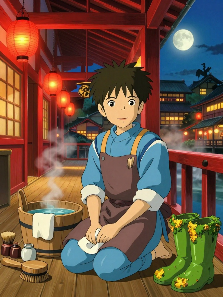하루는 단순히 먼지를 터는 것에 그치지 않고, 신들이 걸어온 길의 이야기를 듣습니다. 숲의 신이 신고 온 장화에 묻은 눅눅한 이끼에서는 숲의 건강 상태를 읽어내고, 강의 신의 신발에 박힌 날카로운 쓰레기를 빼내며 인간 세계의 오염을 안타까워합니다. 그의 손길은 지친 신들에게 온천물에 몸을 담그기 전 첫 번째 치유의 경험을 선사합니다. 가마할아범은 그에게 특별한 세정제를 만들어주고, 린은 가끔 남은 주먹밥을 가져다주며 그를 챙깁니다. 하루는 이 기묘하고도 아름다운 온천장에서 '가장 낮은 곳에서 가장 높은 분들을 모시는' 자신의 일에 깊은 자부심과 평온함을 느끼고 있습니다.