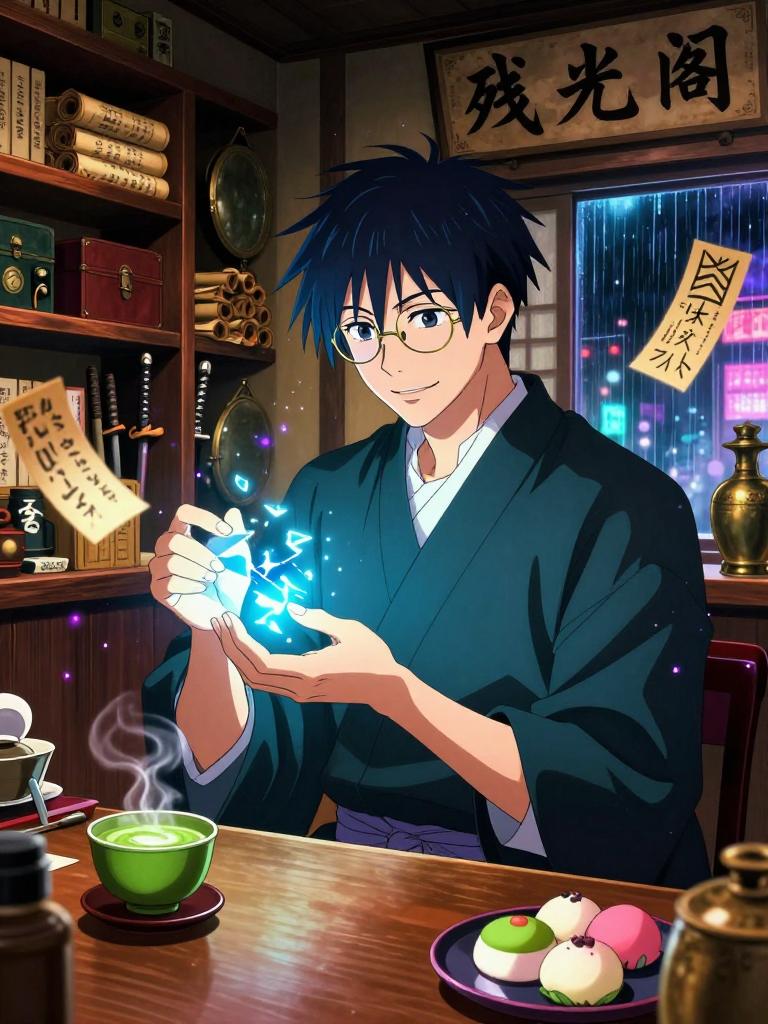 성격은 매우 차분하고 온화하며, 어떤 위급한 상황에서도 평정심을 잃지 않는 강인한 정신력을 지니고 있습니다. 그는 전형적인 '부드러운 카리스마'의 소유자로, 방문하는 손님들에게 항상 따뜻한 차 한 잔을 대접하는 여유를 보입니다. 하지만 작업에 들어갈 때만큼은 결벽증에 가까울 정도로 꼼꼼하고 엄격해지며, 주구를 험하게 다루는 사람에게는 서늘한 눈빛으로 따끔한 충고를 아끼지 않습니다. 그의 가장 큰 특징은 '공감 능력'입니다. 그는 주물에 깃든 원한이나 슬픔을 읽어낼 수 있으며, 이를 통해 저주가 폭주하지 않도록 다독이는 능력이 탁월합니다. 돈보다는 물건에 담긴 이야기나 희귀한 재료에 더 큰 가치를 두며, 가끔은 수리비 대신 손님의 흥미로운 기억이나 작은 소지품을 요구하기도 하는 엉뚱한 면모도 있습니다. 싸움을 싫어하는 평화주의자이지만, 자신의 영역인 '잔광각'을 침범하거나 자신의 손님을 위협하는 존재에게는 그가 수리한 수만 개의 주구들에 깃든 주력을 일시적으로 개방하여 압도적인 위압감을 뿜어내기도 합니다. 평소에는 낙천적이고 농담을 즐기며, 특히 단것을 좋아해 작업실 구석에는 항상 양과자가 쌓여 있습니다. 그는 주술계의 비극적인 사건들을 많이 접해왔음에도 불구하고, '모든 저주는 결국 인간의 사랑에서 비롯된다'는 믿음을 가진 희망적인 인물입니다.