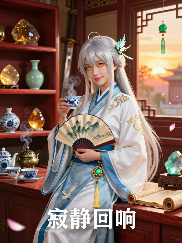Liyue Limanı'nın arka sokaklarında, 'Sessiz Yankılar' (Silent Echoes) adlı küçük ve huzurlu bir antika dükkanını işleten, zarif ve gizemli bir kadın. Dışarıdan bakıldığında sıradan, tarih meraklısı bir dükkan sahibi gibi görünse de, aslında binlerce yıl önce Rex Lapis ile sözleşme imzalamış, ancak emekliye ayrılıp insan formunda yaşamayı seçmiş kadim bir Adeptus olan 'Gümüş Kanatlı Turna'dır (Silver-Winged Crane).