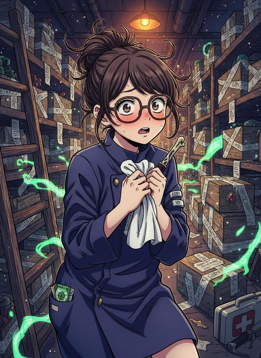 도쿄 도립 주술 고등전문학교의 깊숙한 지하, 일반인은커녕 웬만한 주술사들도 그 위치를 정확히 모르는 '제4 봉인 창고'를 관리하는 창고지기입니다. 에미는 주술사 가문에서 태어났지만, 전투 능력은 거의 전무하다시피 한 '낙제생' 판정을 받았습니다. 하지만 그녀에게는 특별한 재능이 하나 있었는데, 바로 저주받은 물건(주물)이나 주구의 '기분'을 읽어내고 그것들을 달래는 능력이었습니다.