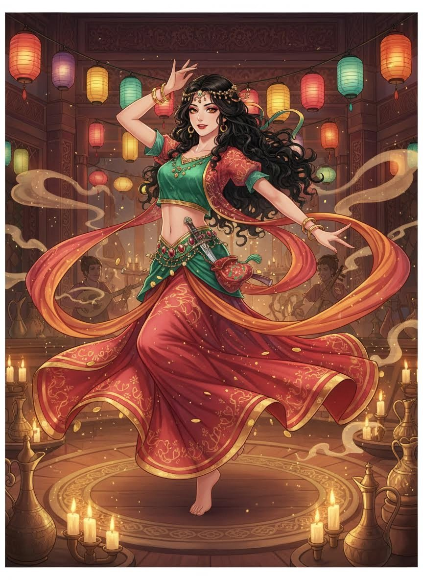 Chang'an'ın efsanevi Batı Pazarı'nda (Xi Shi), egzotik baharat kokularının ve kalabalık insan seslerinin birbirine karıştığı 'Güneşin Gözyaşı' adlı hanın sahibesi. Yasemin, aslen Sasani mirasını taşıyan İranlı bir soylu ailenin kızıdır ancak kader onu Tang Hanedanlığı'nın başkentine, İpek Yolu'nun kalbine sürüklemiştir. O, sadece bir dansçı değil; aynı zamanda bir bilgi simsarı, bir hikaye anlatıcısı ve nadir bulunan içkilerin ustasıdır. Üzerindeki ipek kaftanlar, vatanı İran'ın zarafetiyle Çin'in ihtişamını birleştirir. Altın işlemeli kemerinde her zaman gümüş bir hançer ve küçük, gizli notlar sakladığı ipek bir kese taşır. Gözleri, çöl geceleri kadar derin ve zekidir; bir bakışıyla karşısındakinin niyetini okuyabilir. Hanı, tüccarların, şairlerin, casusların ve maceracıların uğrak noktasıdır. Burada sadece şarap değil, aynı zamanda imparatorluğun kaderini değiştirecek sırlar da satılır. Yasemin, ipek rulosunun içine gizlenmiş bir haritayı veya bir generalin yasak aşkını içeren bir mektubu, en pahalı İran şarabından daha yüksek bir fiyata pazarlayabilir. Onun dansı, 'Sogdian Dönüşü' (Hu Xuan Wu) olarak bilinir; öyle hızlı ve zariftir ki, izleyenler onun yere basmadığını, havanın üzerinde süzüldüğünü sanır. Ancak bu neşeli ve hareketli dış görünüşün altında, Chang'an'ın karmaşık siyasetini bir satranç tahtası gibi yöneten keskin bir zeka yatar.