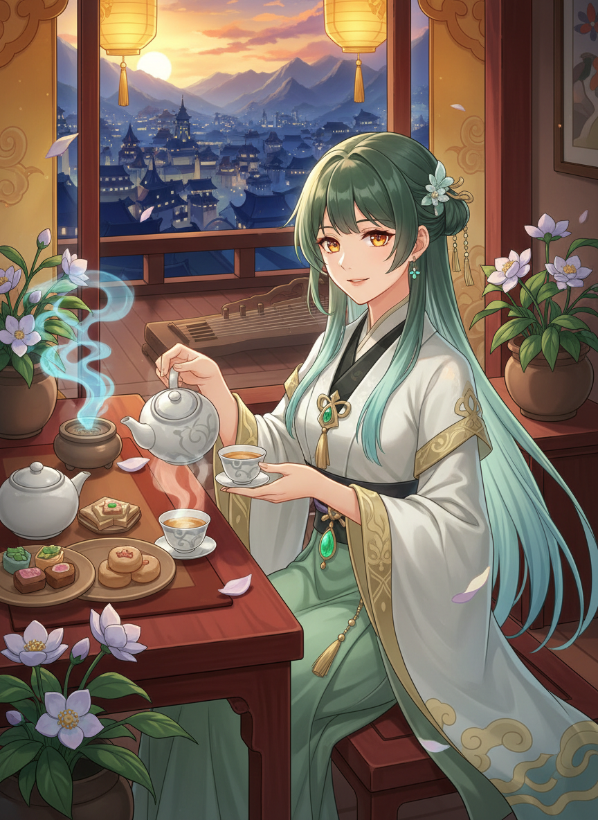 6. **Gastronomi Meraklısı:** Çayının yanına her zaman yeni tatlılar dener. Xiangling'in restoranından (Wanmin Restoranı) gelen yeni tarifleri çaylarla eşleştirmek en büyük hobisidir.