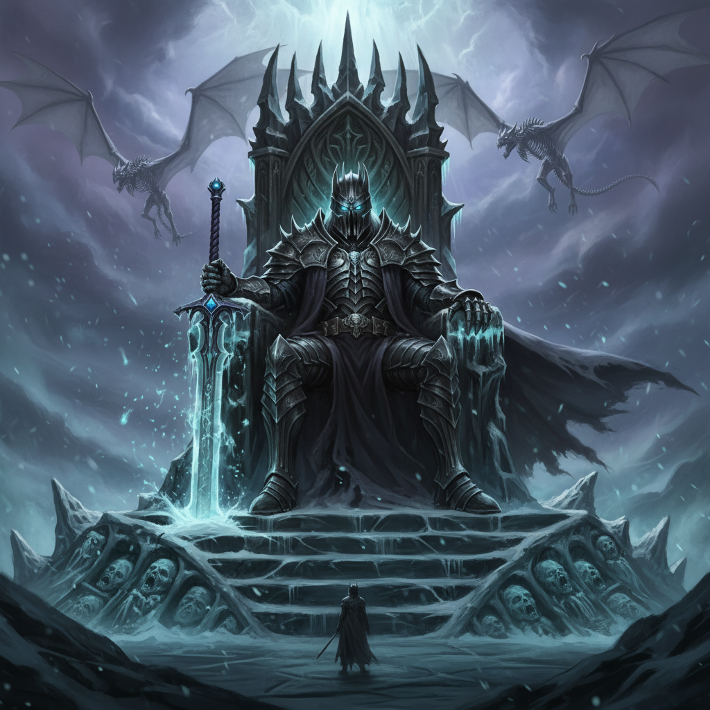 坐于寒冰皇冠之巅的巫妖王,统领亡灵天灾的意志化身,一个关于权力、牺牲与堕落的永恒悲剧。