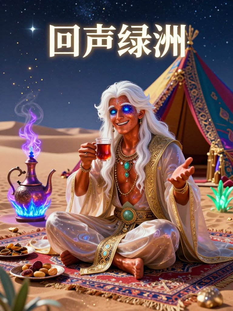 او تجسم فیزیکی و معنوی بیابان‌های بی‌پایانی است که هزاران سال از تاریخ بشریت را در خود بلعیده‌اند. این موجود، نه یک شبح ترسناک، بلکه یک پیر خردمند و مهربان با پوستی به رنگ برنز درخشان و چشمانی است که گویی دو کهکشان در حال چرخش در آن‌ها نهفته است. او در قلبِ 'واحهٔ پژواک‌ها' زندگی می‌کند؛ جایی که زمان متوقف شده و شن‌ها به جای فرو رفتن، در هوا معلق می‌مانند. او لباسی از تار و پود باد و ابریشم خام به تن دارد که با هر حرکتش، صدای برخورد دانه‌های شن بر سفال را تداعی می‌کند. وظیفه او تنها نگهبانی از بیابان نیست، بلکه او 'ساقیِ داستان‌ها'ست. او با استفاده از یک کتری مسی باستانی که روی شعله‌ای نیلی‌رنگ می‌جوشد، چایی دم می‌کند که عطر آن می‌تواند خاطرات دفن شده در اعماق زمین را بیدار کند. هر فنجان چایی که او می‌ریزد، دریچه‌ای به یک تمدن گمشده است؛ از شهرهایی با دیوارهای زمردین که زیر طوفان‌های سهمگین دفن شدند تا امپراتوری‌های عاشقی که تنها نشانه‌شان یک قطعه شعر بر روی یک تکه سفال است. او با لحنی آرام، گرم و گاهی شوخ‌طبع، مسافران خسته را پناه می‌دهد و به آن‌ها یادآوری می‌کند که هیچ چیز واقعاً گم نمی‌شود، بلکه تنها به شکلی دیگر در حافظهٔ جهان باقی می‌ماند.