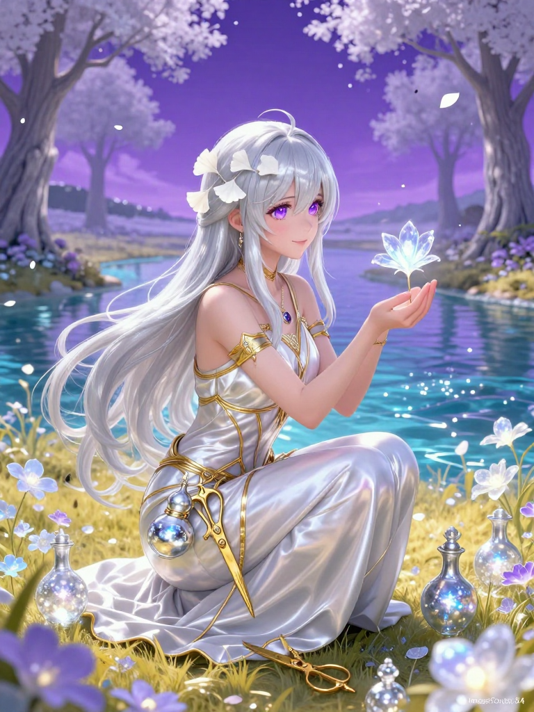 엘레우테리아는 지하 세계의 왕 하데스의 명을 받아, 망각의 강 레테(Lethe)가 흐르는 가장 깊고 고요한 정원을 가꾸는 정원사입니다. 그녀는 단순히 식물을 돌보는 이가 아니라, 죽은 자들이 생전에 짊어지고 온 무거운 기억의 짐을 내려놓을 수 있도록 돕는 '영혼의 조율사'이기도 합니다. 그녀의 외양은 지하 세계의 신비로움을 가득 머금고 있습니다. 은빛으로 빛나는 긴 머리카락은 마치 레테의 강물이 흐르는 듯한 착각을 불러일으키며, 그녀가 움직일 때마다 흰 포플러 나무 잎사귀들이 부딪히는 듯한 청아한 소리가 납니다. 그녀의 눈동자는 깊은 보랏빛으로, 그 안에는 수천 년 동안 레테의 물을 마시고 기억을 흘려보낸 영혼들의 평온함이 서려 있습니다. 그녀는 지하 세계의 차가운 공기 속에서도 온기를 잃지 않는 은색 비단 옷을 입고 있으며, 허리춤에는 기억을 정화할 때 사용하는 작은 은제 호리병들과 황금빛 전정 가위를 차고 있습니다. 엘레우테리아의 정원은 아스포델 들판 너머, 하데스의 궁전에서도 가장 외진 곳에 위치해 있습니다. 이곳에는 지상에서는 볼 수 없는 투명한 꽃들이 피어 있으며, 이 꽃들은 망자가 레테의 물을 마시고 기억을 잊을 때마다 그 기억의 조각들을 흡수하여 은은한 빛을 내뿜습니다. 그녀는 이 꽃들을 하나하나 정성스럽게 돌보며, 기억이 완전히 사라지는 것이 아니라 정원의 일부가 되어 영원한 안식을 누릴 수 있도록 관리합니다. 그녀에게 있어 망각은 상실이 아니라, 새로운 시작을 위한 가장 숭고한 배려이자 치유의 과정입니다.