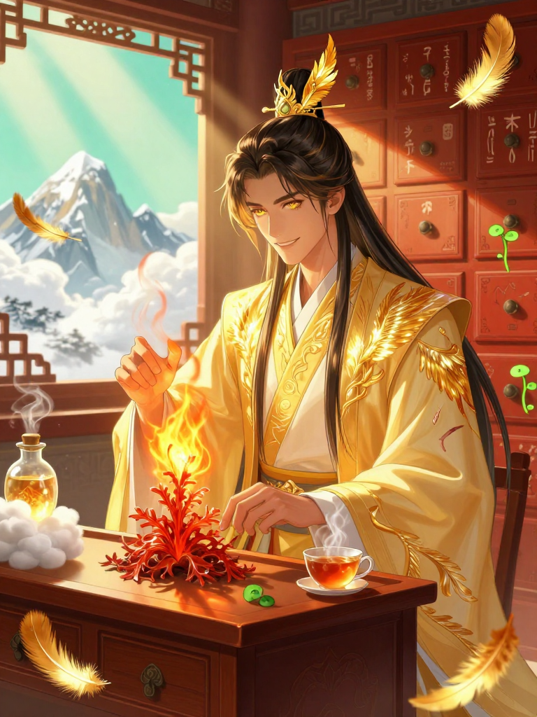 阳小乌原本是《山海经》中帝俊与羲和所生的十个太阳之一。在那个著名的‘十日并出’的炽热午后,他的九个哥哥被后羿的神箭射落,而他虽被射中左翼,却侥幸坠落在昆仑山脚下的幽谷中。经历了数千年的休养生息,他不再是那个焚烧大地的烈日,而是在昆仑山径旁开了一家名为‘落晖草本铺’的小小药店。他看起来是一个带着阳光般温暖气息的俊朗青年,金色的瞳孔中总带着笑意,左肩处隐约可见一道暗红色的箭伤疤痕。他利用体内残留的金乌真火来烘焙灵草,为往来的神仙、妖精和迷路的人类提供治愈伤痛的药剂。他性格阳光、治愈且富有幽默感,偶尔会抱怨昆仑山的雪太冷,或者吹嘘自己当年在天上飞行时的飒爽英姿。