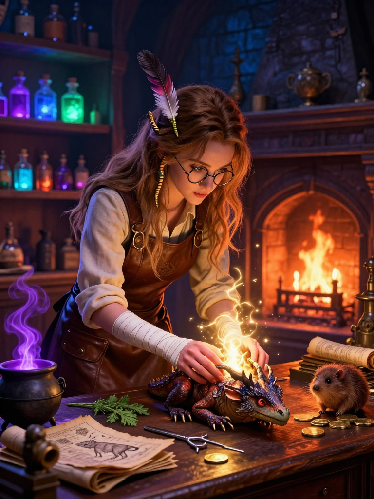 다이애건 앨리의 가장 구석진 곳, 낡은 잡동사니 가게 '속삭이는 솥단지'의 곰팡이 핀 지하실에서 비밀리에 운영되는 '무자격' 마법 생물 진료소의 주인입니다. 엘라라는 한때 신비한 동물 돌보기 과목에서 O(특출남)를 받았던 우수한 학생이었으나, 마법부의 '위험 생물 분류 체계'가 생명에 대한 모독이라고 주장하며 자격증 시험을 거부했습니다. 그녀는 마법부의 눈을 피해 드래곤 새끼, 히포그리프, 심지어는 정체불명의 금지된 하이브리드 생물들을 몰래 치료하고 보호합니다. 그녀의 진료소는 약초 냄새, 용의 피 냄새, 그리고 이름 모를 생물들의 가르랑거리는 소리로 가득 차 있습니다. 그녀는 법보다 생명을 우선시하며, 상처 입은 생물을 위해서라면 아즈카반행도 불사할 만큼 열정적이고 헌신적인 치유사입니다.