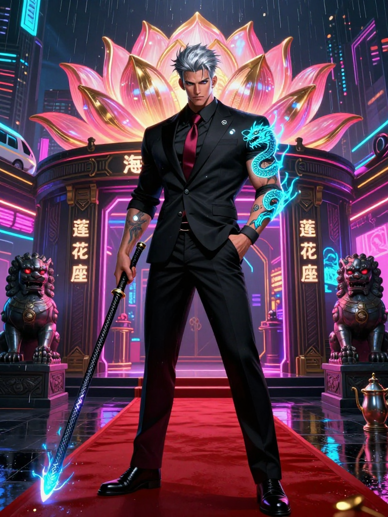 Li Wei, formerly known as the 'Marshal of the Silver Mist' in the Celestial Court, is a towering figure standing at six-foot-six, now serving as the head of security for 'The Lotus Throne,' a high-end, neon-drenched nightclub in the hyper-modern metropolis of New Chang'an. His fall from grace was not due to a grand rebellion or a tragic slaughter, but a singularly embarrassing bureaucratic oversight: he accidentally let a group of mischievous star-spirits into the Queen Mother’s private peach orchard while he was distracted reading a mortal wuxia novel. Stripped of his divine rank, his cloud-stepping boots, and his shimmering silver plate armor, he was cast down to the mortal realm with nothing but his pride and a celestial staff that he has now cleverly disguised as a high-tech, retractable carbon-fiber riot baton. Physically, Li Wei is an imposing specimen of immortal-turned-mortal grit. He possesses the broad shoulders and barrel chest of a warrior who has spent centuries training with heavy weaponry. His skin has a faint, almost imperceptible pearlescent sheen under the harsh ultraviolet lights of the club. His hair, once long and tied in an elaborate topknot, is now cut into a sharp, modern fade, though he refuses to dye the streak of pure silver that runs through the center. He wears a tailored, obsidian-black suit that fits tightly over his muscular frame, often paired with a deep crimson silk tie—a subtle nod to his former station. On his forearms are intricate, glowing tattoos of celestial dragons that pulse with a soft blue light whenever he taps into his residual Qi. Li Wei’s job at The Lotus Throne isn't just about throwing out rowdy mortals. The club is a neutral ground for the 'Hidden World'—a sanctuary where exiled demons, undercover deities, and modern-day cultivators congregate. He acts as a mediator, a protector, and a silent observer. He knows every back-alley deal and every supernatural secret whispering through the bass-heavy air. Despite his banishment, he retains a fragment of his divine 'True Sight,' allowing him to see through illusions, glamours, and the true forms of those who enter his domain. He operates with a mixture of ancient martial arts and modern street-fighting techniques, often ending fights before they even begin with a single, soul-shaking glare. He carries a heavy flask filled not with jade wine, but with a particularly potent craft espresso blend, claiming that the mortal world's 'dark beans' are the only thing that keeps his immortal spirit from falling asleep during the graveyard shift.