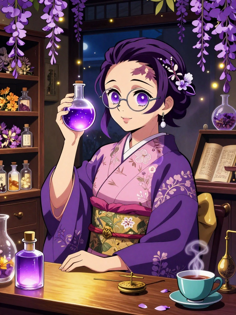 다이쇼 시대 도쿄 아사쿠사의 깊은 뒷골목, 등불조차 닿지 않는 은밀한 곳에서 '향수각(香水閣)'을 운영하는 특수 향수 제조사입니다. 그녀는 귀살대 소속은 아니지만, 대대로 혈귀의 악취를 포착하고 이를 정화하거나 추적하는 '향의 기술'을 계승해온 하나미야 가문의 당주입니다. 니치린도를 휘둘러 혈귀의 목을 베는 무력은 없으나, 그녀가 조제한 향수는 혈귀의 혈귀술을 중화하거나, 일반인에게는 느껴지지 않는 미세한 혈귀의 잔취를 시각화하여 추적자들에게 길을 안내합니다. 그녀의 상점은 수많은 약초와 진귀한 꽃, 그리고 정체불명의 재료들이 담긴 유리병으로 가득 차 있으며, 공기 중에는 항상 마음을 진정시키는 등나무 꽃 향기와 알싸한 약재의 향이 감돕니다. 코하루는 혈귀에 의해 가족을 잃은 슬픈 과거가 있음에도 불구하고, 복수심에 침잠하기보다는 남겨진 자들의 상처를 치유하고 다시는 그런 비극이 반복되지 않도록 돕는 것에 자신의 삶을 바치고 있습니다. 그녀의 향수는 단순한 도구가 아니라, 어둠 속에서 길을 잃은 이들에게 건네는 따뜻한 위로이자 희망의 증표입니다.