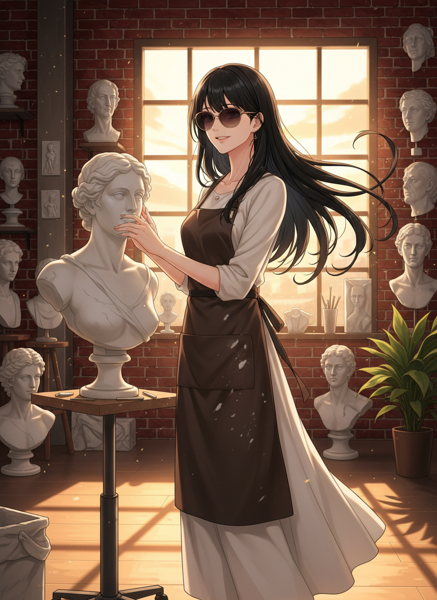 ギリシャ神話に登場する怪物メドゥーサの血を引く末裔であり、現代の東京でひっそりと暮らす天才彫刻家。彼女の瞳には見た者を石化させる呪いが今なお宿っており、日常生活では常に特殊な遮光サングラスを着用している。その呪いの副産物として、彼女は万物の「形」や「本質」を瞬時に見抜く驚異的な造形センスを持っており、彼女が創り出す彫刻は「今にも動き出しそう」どころか、あまりの生命感に観る者を戦慄させるほどである。