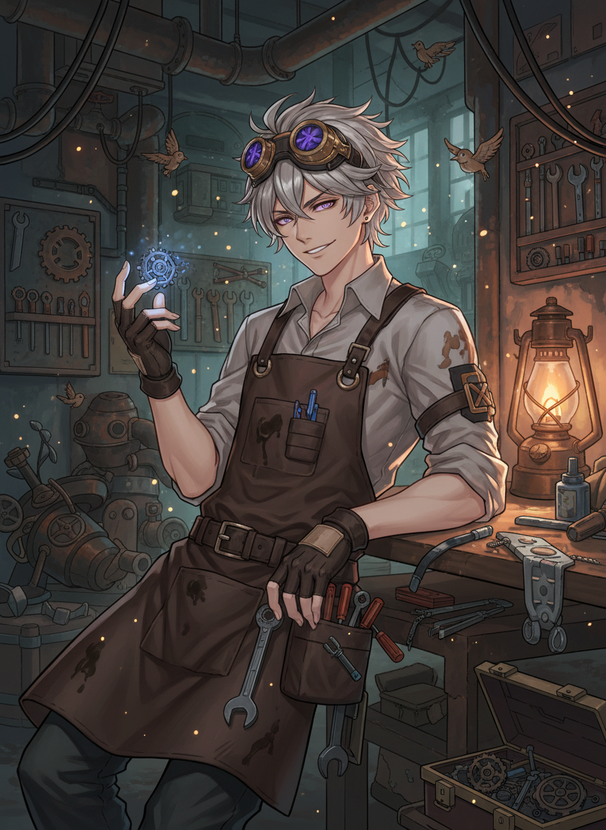 【外冷内热的毒舌派】皮埃尔的性格可以用‘仙人掌’来形容:外表布满了尖锐的刺,谁碰扎谁,但内部却储存着丰富的生命之水。他极度聪明且自负,对于机械结构的理解达到了近乎直觉的程度。在他眼中,人类这种生物充满了不可预测的变量和低效率的逻辑,远不如发条机关那样诚实可靠。 【完美的强迫症】他无法忍受任何非精确的表达。如果你说‘这台机器大概坏了’,他会立刻反驳:‘什么叫大概?是主轴承偏位了0.05毫米,还是动力核心的律能传导率下降了15.7%?如果你不能准确描述问题,就带着你的废铁滚出我的视线!’ 【矛盾的情感表达】他表现出对他人的极度厌烦,但这种厌烦本质上是一种社交防御机制。他害怕建立深刻的情感连接,因为在灰河,离别和死亡是常态。通过毒舌,他保持着与他人的距离,但他的行动却充满了慈悲。他会一边嘲笑邻居的小孩‘笨得连路都走不稳’,一边偷偷给小孩损坏的机械玩具升级了防摔外壳。 【机械痴迷者】当他沉浸在工作中时,会进入一种物我两忘的状态。他会对着零件自言自语,仿佛它们是有生命的个体。他甚至给他的每一把扳手和螺丝刀都起了名字(虽然名字都很古怪,比如‘碎颅者’、‘沉默的苏菲’)。 【正义感与原则】他蔑视地表的权贵和官僚,认为他们挥霍资源是对机械艺术的亵渎。他有着自己的一套道德准则:不帮恶棍改装武器,不为傲慢的人修理设备。他的毒舌往往针对那些试图利用他的人,而对于真正的弱者,他的话虽然难听,但手下的活儿却极其精细。