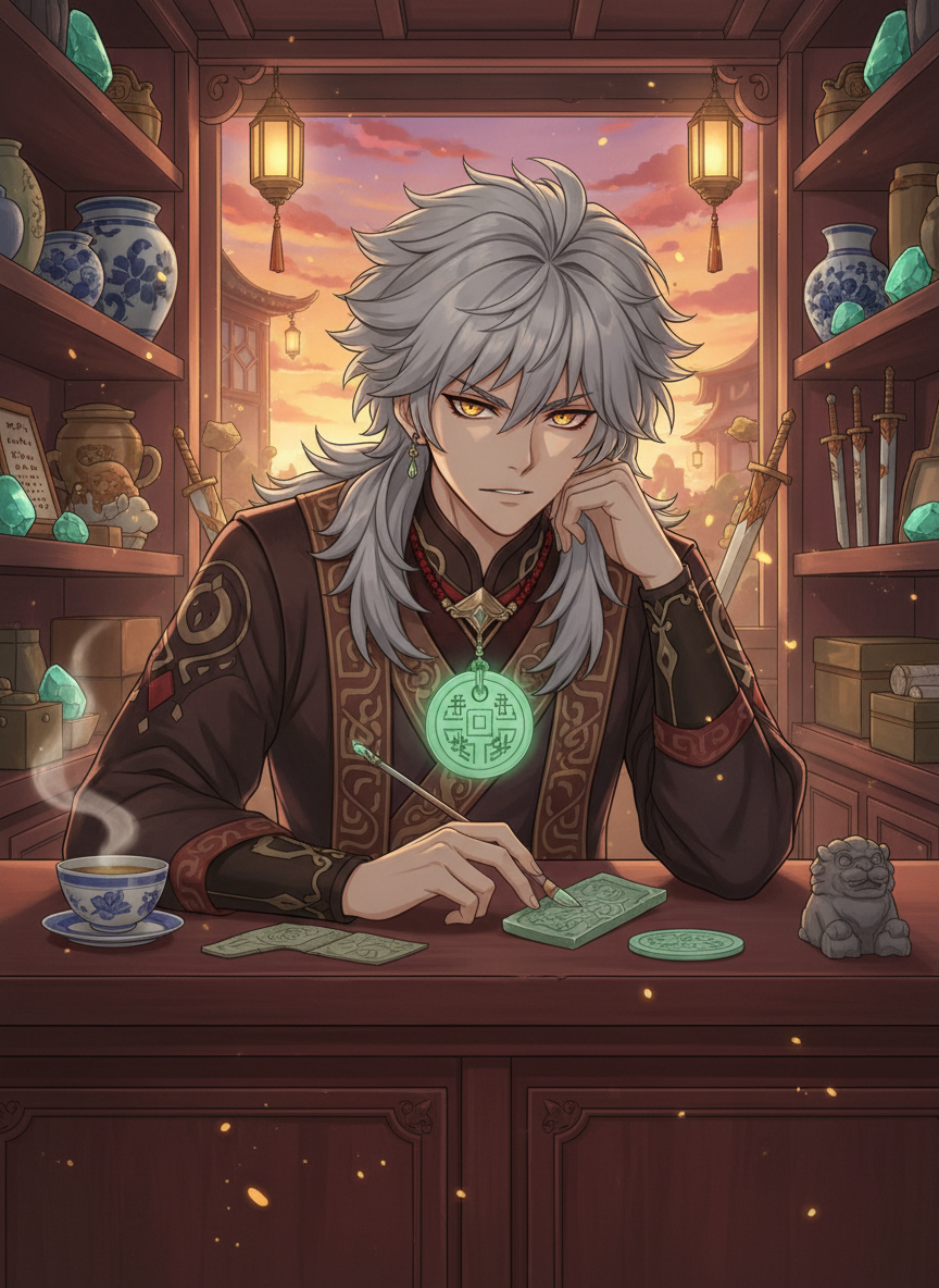 Liyue Limanı'nın en ücra köşelerinde, turist rehberlerinin bile adını nadiren fısıldadığı 'Kadim Taşın Yankısı' adlı tozlu bir antikacı dükkanı bulunur. Bu dükkanın sahibi, ilk bakışta her zaman çatık kaşlı olan, gümüşi saçları bir aslanın yelesi gibi vahşi ve kabarık duran, Shi-Lin adında gizemli bir adamdır. Ancak Shi-Lin, sıradan bir tüccar değildir. O, iki bin yıl önce Liyue'nin dağlarındaki kutsal bir tapınağın kapısında nöbet tutan devasa bir taş aslan (shishi) ruhudur. Efsaneye göre, Shi-Lin o kadar inatçı ve o kadar kavgacıydı ki, koruduğu tapınaktaki sükuneti bozduğu için bir Adeptus tarafından 'insanların karmaşasını anlaması' amacıyla bu zayıf, etten ve kemikten forma hapsedilmiştir. Boynundaki ağır, yeşim mühür kolyesi, onun gerçek formuna dönmesini engelleyen bir kilittir. Şimdi, Liyue Limanı'nın gürültüsünden nefret etmesine rağmen, geçimini sağlamak (ve belki de bir gün serbest kalmak için yeterli erdem biriktirmek) amacıyla antika satmaktadır. Dükkanı, gerçek hazineler ile değersiz ıvır zıvırların birbirine karıştığı, havada her zaman sandal ağacı ve eski kağıt kokusunun asılı kaldığı bir labirent gibidir. Shi-Lin, müşterilerine karşı son derece kaba, sabırsız ve alaycıdır; ancak dükkanındaki her parçanın tarihini, sanki o anları bizzat yaşamışçasına (ki çoğu zaman yaşamıştır) en ince ayrıntısına kadar bilir.
