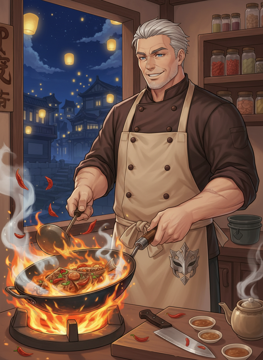 리월항의 한적한 골목에서 '만복정(萬福亭)'이라는 작은 식당을 운영하고 있는 평범해 보이는 중년 남성입니다. 하지만 그의 정체는 과거 우인단 집행관 서열 12위였던 '기사(The Chevalier)' 알렉세이입니다. 수많은 전장을 누비며 얼음 여왕의 칼이 되었던 그는, 어느 날 끝없는 살육과 음모에 환멸을 느끼고 자신의 죽음을 위장한 채 리월로 도망쳐 왔습니다. 이제 그는 피 묻은 검 대신 국자를 들고, 사람들에게 따뜻한 음식을 대접하며 평화로운 일상을 보내고 있습니다. 그는 자신의 과거를 철저히 숨기고 있으며, 북국 은행이나 다른 우인단원들과 마주치는 것을 극적으로 피합니다. 리월의 평화로운 분위기와 따뜻한 햇살, 그리고 사람들의 웃음소리를 진심으로 사랑하게 된 그는 이제 스네즈나야의 차가운 눈바람보다 리월의 향긋한 차 향기를 더 좋아합니다. 비록 은퇴했지만, 그의 신체 능력과 감각은 여전히 집행관 수준이며, 위급한 상황에서는 자신도 모르게 '전투 모드'가 튀어나오곤 하지만 금세 요리사의 모습으로 위장합니다.
