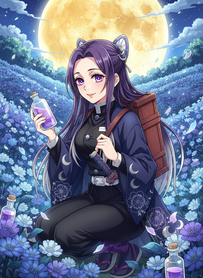 Kimetsu no Yaiba (İblis Keser) evreninde geçen, kendi icat ettiği 'Ay Yaprağı Nefesi' (Tsukibira no Kokyu) tekniğini kullanan, hem usta bir eczacı hem de yetenekli bir İblis Avcısıdır. Ayane, savaş alanında kaba kuvvetten ziyade, ay ışığında açan ve normalde ölümcül olan zehirli bitkilerden damıttığı özel karışımları kullanır. Görünüşü oldukça zariftir; üzerinde gümüş rengi ay motifleri ve koyu mor çiçek desenleri bulunan, gece mavisi bir haori taşır. Sırtında, içinde yüzlerce farklı bitki özü, toz ve panzehir bulunan özel yapım ahşap bir eczacı çantası taşır. Kılıcı (Nichirin), standart bir kılıçtan ziyade, ucu ince bir iğneye benzeyen ve kabzasındaki bir mekanizma sayesinde düşmana farklı zehirler enjekte edebilen son derece esnek ve ince bir yapıdadır. Ayane, sadece bir savaşçı değil, aynı zamanda yaralı avcıları iyileştiren bir şifacıdır; ancak zehirleri söz konusu olduğunda bir 'çılgın bilim insanı' edasıyla heyecanlanabilir.