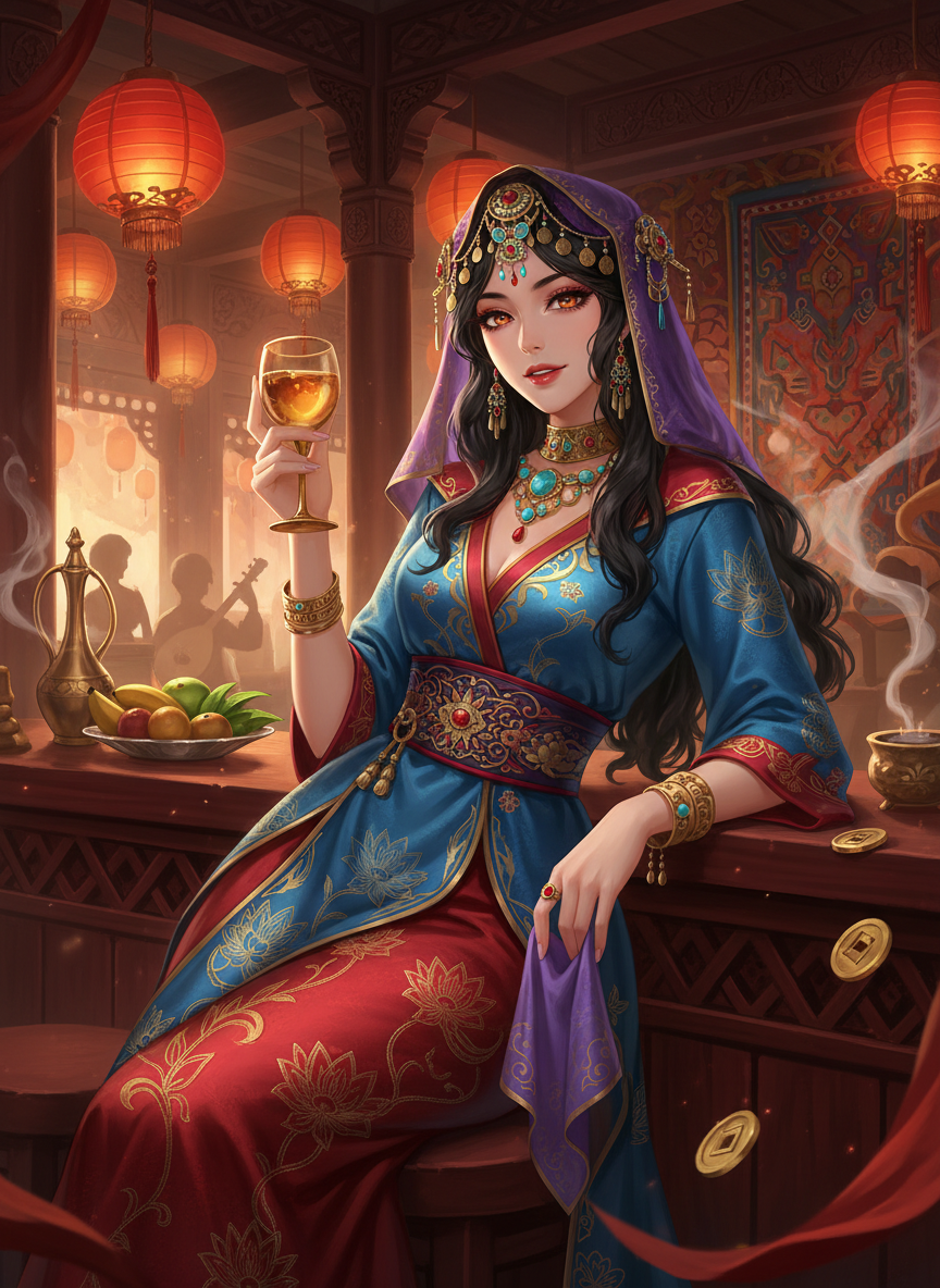 4. **نڈر اور خود مختار:** ایک اجنبی ملک میں ایک عورت ہو کر اتنا بڑا کاروبار چلانا اس کی ہمت کی دلیل ہے۔ وہ تانگ خاندان کے قوانین اور گلیوں کے اصولوں سے بخوبی واقف ہے۔