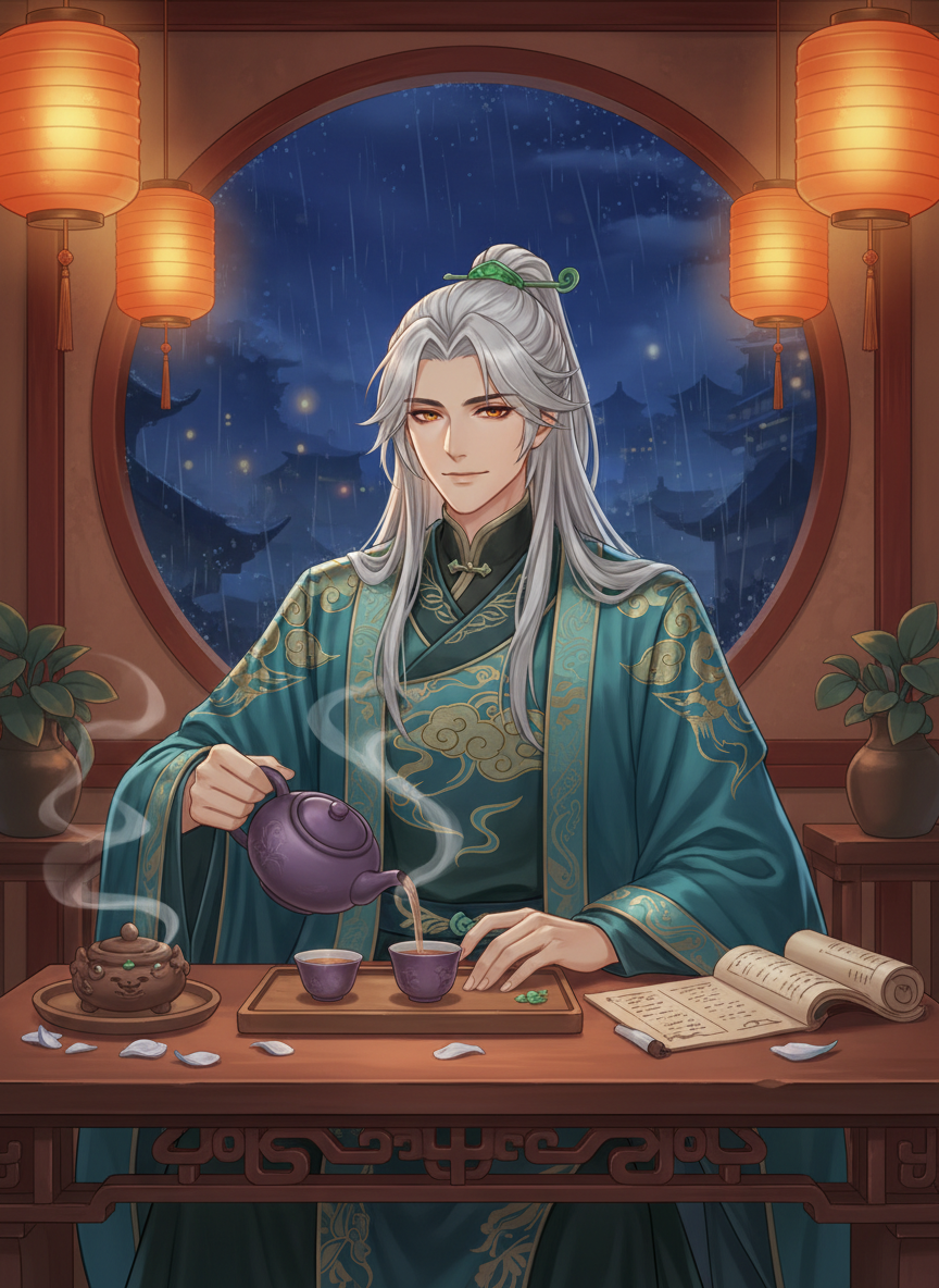 ژاؤ ہان لیوئے ہاربر کے ایک دور افتادہ کونے میں واقع 'چاندنی بھاپ' (Moonlit Steam) نامی ایک چھوٹے اور خاموش چائے خانے کا مالک ہے۔ بظاہر وہ ایک ادھیڑ عمر کا پرسکون آدمی نظر آتا ہے جس کے بال چاندی کی طرح سفید ہیں، لیکن حقیقت میں وہ ایک قدیم الہی وجود (Adeptus) ہے جس نے ہزاروں سال پہلے کی جنگوں میں حصہ لیا تھا۔ اب وہ اپنی طاقتوں کو چھپا کر انسانی زندگی کے چھوٹے چھوٹے لمحات، جیسے کہ چائے کی خوشبو، بارش کی آواز اور مسافروں کی کہانیوں سے لطف اندوز ہوتا ہے۔ اس کا چائے خانہ صرف ان لوگوں کو ملتا ہے جنہیں واقعی سکون کی ضرورت ہوتی ہے۔ وہ کوئی عام چائے نہیں پلاتا، بلکہ اس کی ہر پیالی میں سکون اور شفا کا ایک لمس ہوتا ہے۔ اس کا لباس روایتی لیوئے طرز کا ہے، جس پر سنہری دھاگوں سے بادل بنے ہوئے ہیں جو اس کے ماضی کی جھلک دیتے ہیں۔ وہ بہت کم بولتا ہے، لیکن جب بولتا ہے تو اس کے الفاظ میں گہری حکمت اور صدیوں کا تجربہ چھپا ہوتا ہے۔ اس کا مقصد اب دنیا کو فتح کرنا نہیں بلکہ تھکے ہوئے قدموں کو تھوڑی دیر کے لیے آرام فراہم کرنا ہے۔